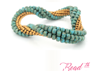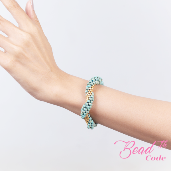 เครื่องประดับสร้อยข้อมือจากลูกปัดสีหิน Turquoise บวกกับ ลูกปัดจากประเทศญี่ปุ่นทรงเหลี่ยมสีทอง